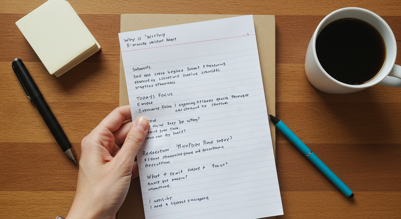 그중에서도 매일 5분 글쓰기 습관은 사고를 정리하고 목표를 명확히 하며,